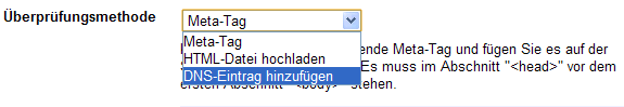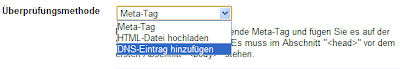 Webmaster Tools: Inhaberschaft via DNS nachweisen